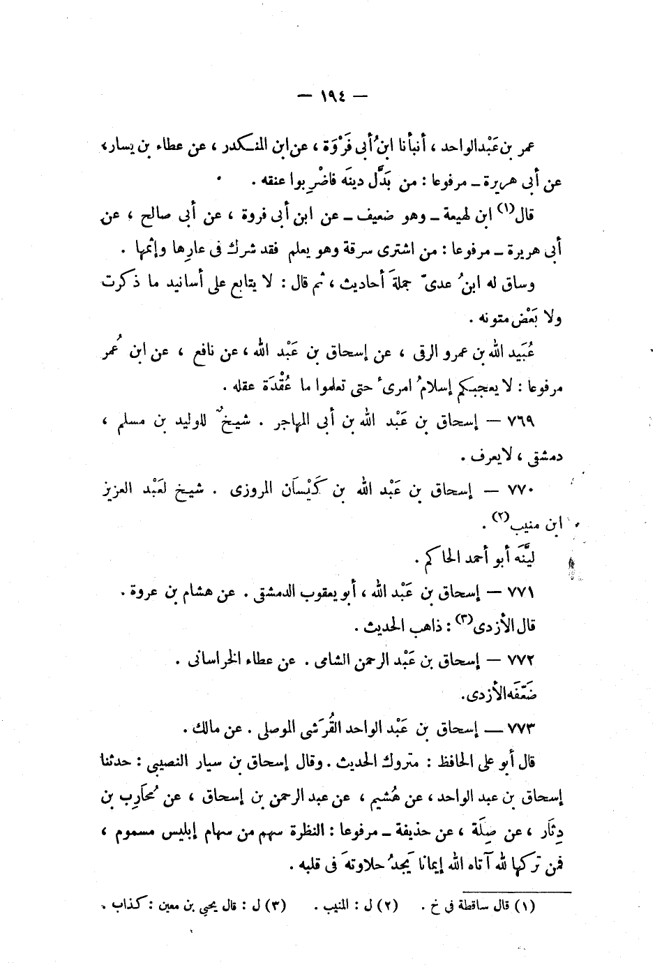 (3) ل: قال يحيى بن معين: كذاب.