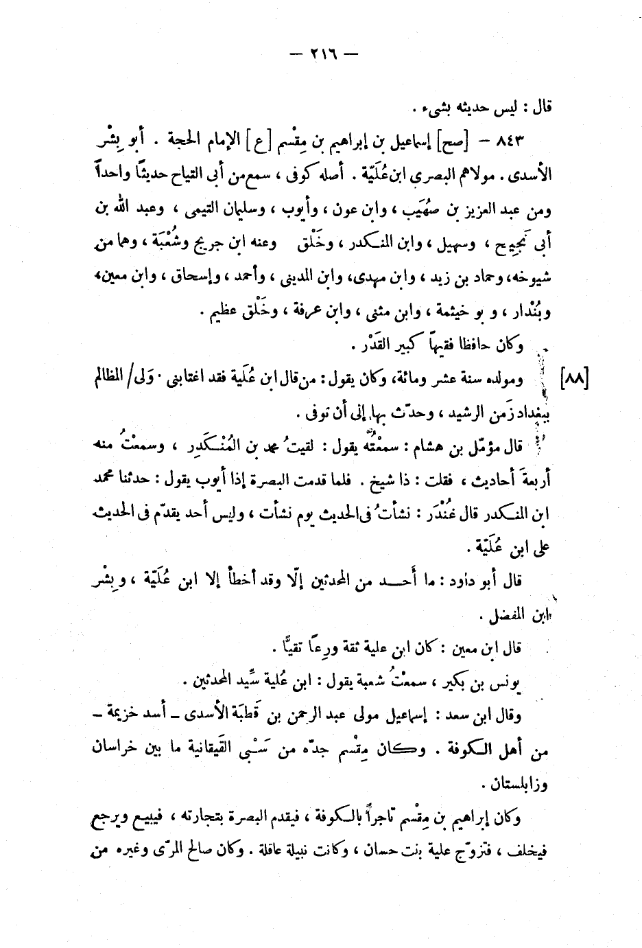 يونس بن بكير، سمعت شعبة يقول: ابن علية سيد المحدثين.