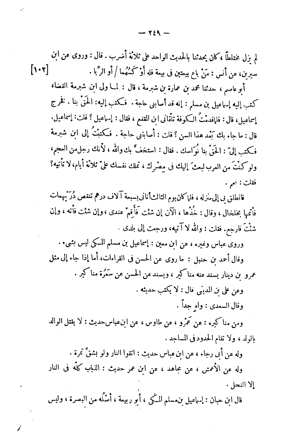 فخرج إسماعيل، قال: فلما قدمت الكوفة تلقاني ابن المقفع، فقال: إسماعيل؟ قلت: إسماعيل.