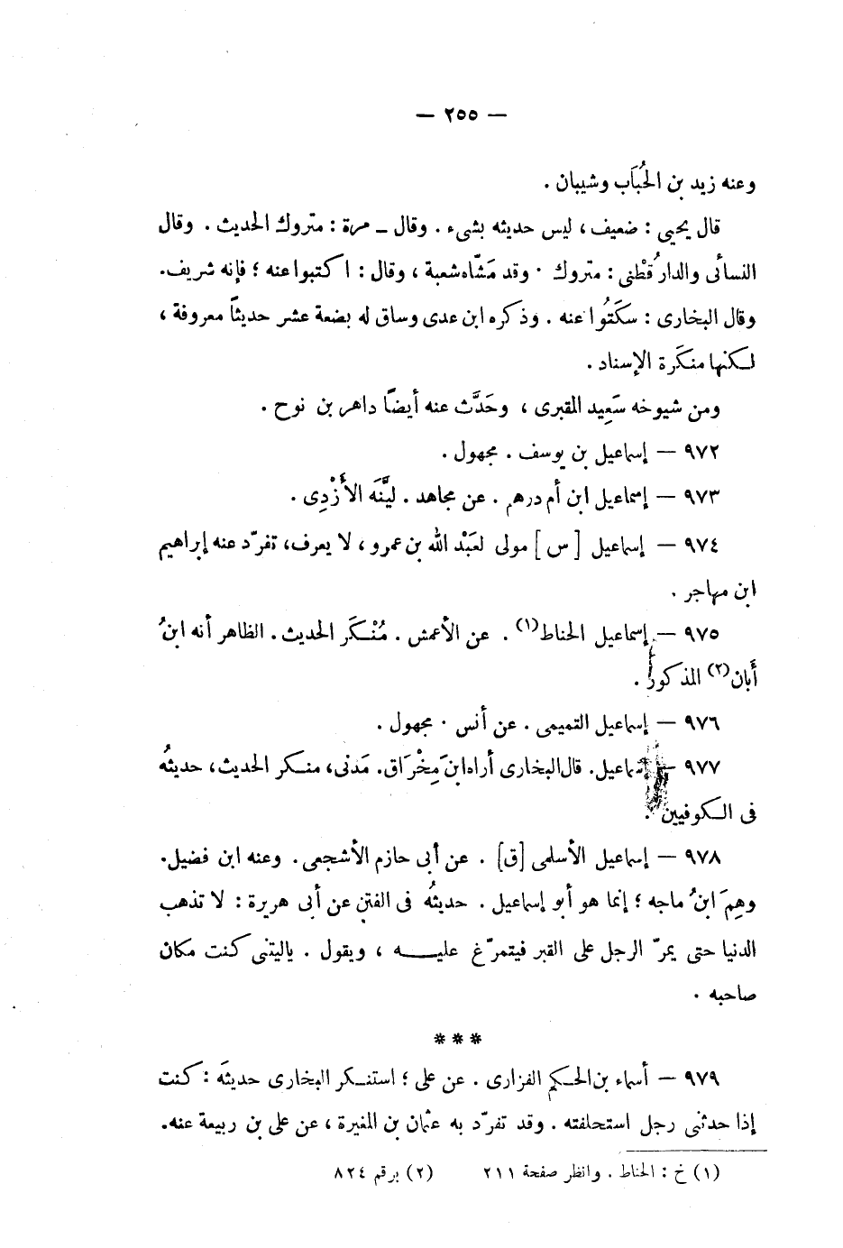974 - إسماعيل [س] مولى لعبد الله بن عمرو، لا يعرف، تفرد عنه إبراهيم ابن مهاجر.