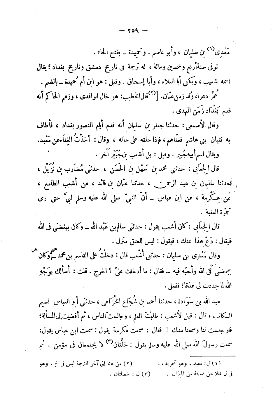 معدي (1) بن سليمان، وأبو عاصم، وحميدة - بفتح الحاء.