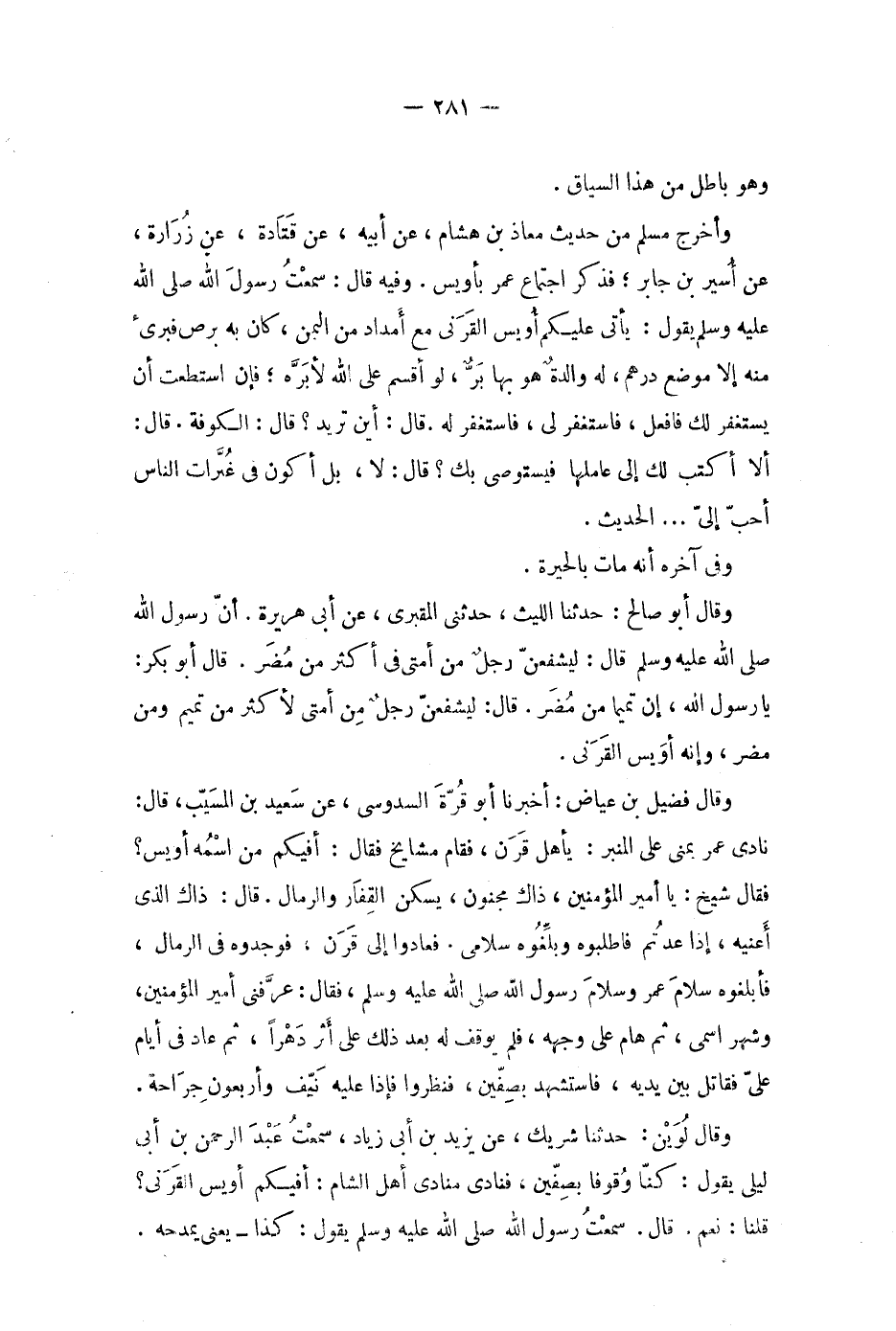 وأخرج مسلم من حديث معاذ بن هشام، عن أبيه، عن قتادة، عن زرارة، عن أسير بن جابر، فذكر اجتماع عمر بأويس.