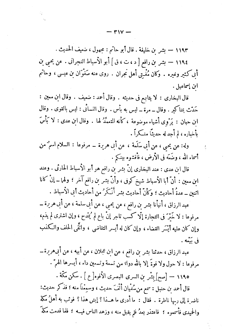 1194 - بشر بن رافع [د، ت، ق] أبو الأسباط النجرانى.
