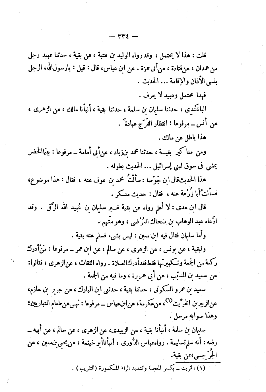 رواه عباس الدوري، أنبأنا أبو خيثمة، عن يحيى بن معين، عن الجرجسى، عن بقية.
