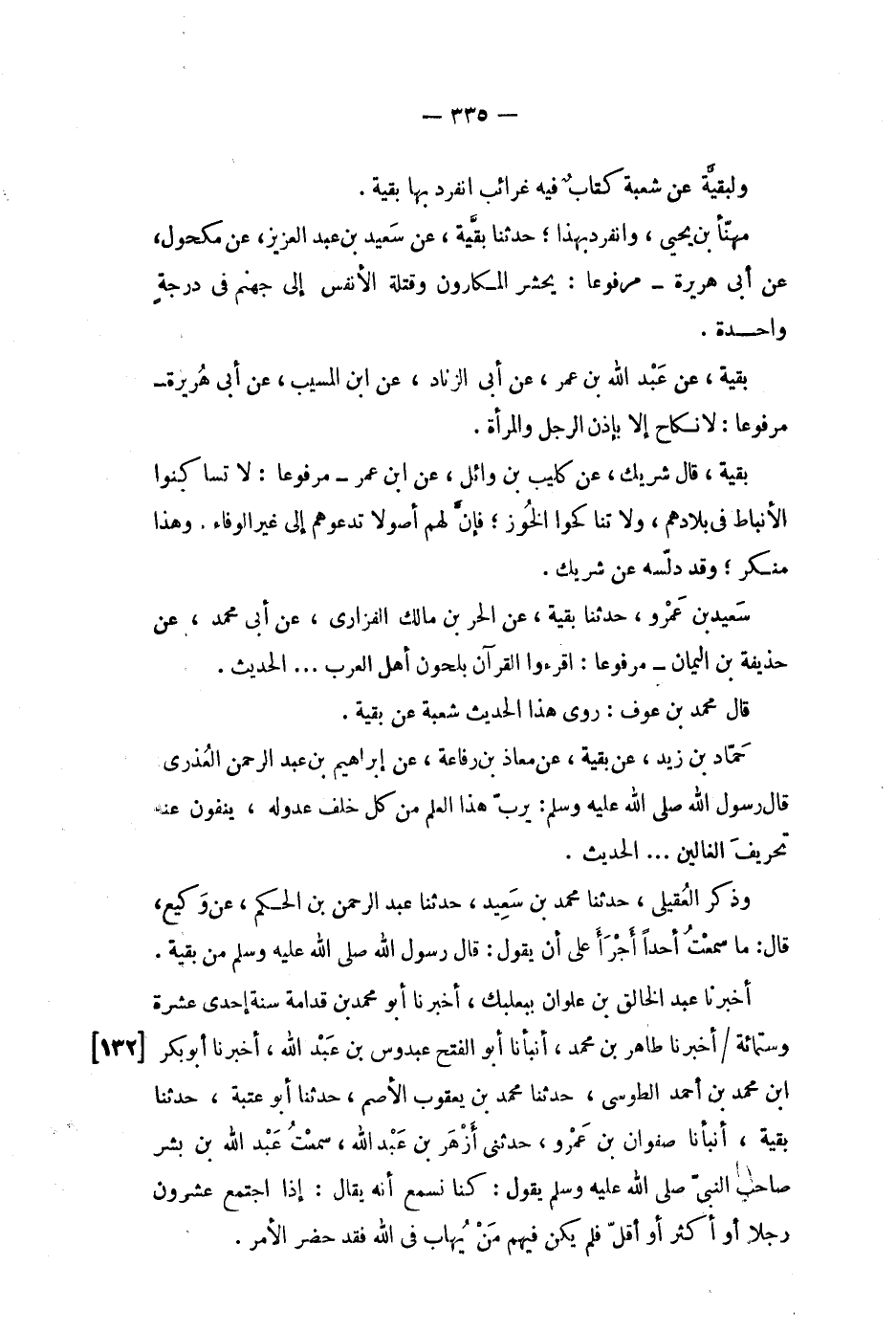 ولبقية عن شعبة كتاب فيه غرائب انفرد بها بقية.