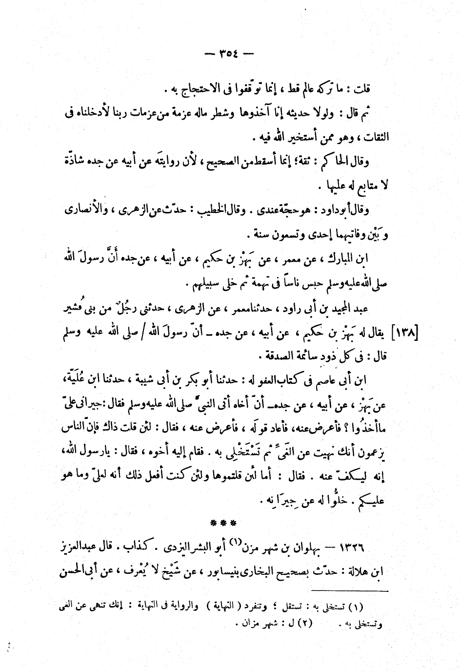 ابن أبي عاصم في كتاب العفو له: حدثنا أبو بكر بن أبي شيبة، حدثنا ابن علية، عن بهز، عن أبيه، عن جده - أن أخاه أتى النبي صلى الله عليه وسلم فقال: جيراني على ما أخذوا؟ فأعرض عنه، فأعاد قوله، فأعرض عنه، فقال: لئن قلت ذاك فإن الناس يزعمون أنك نهيت عن الغى ثم تستخلى به.