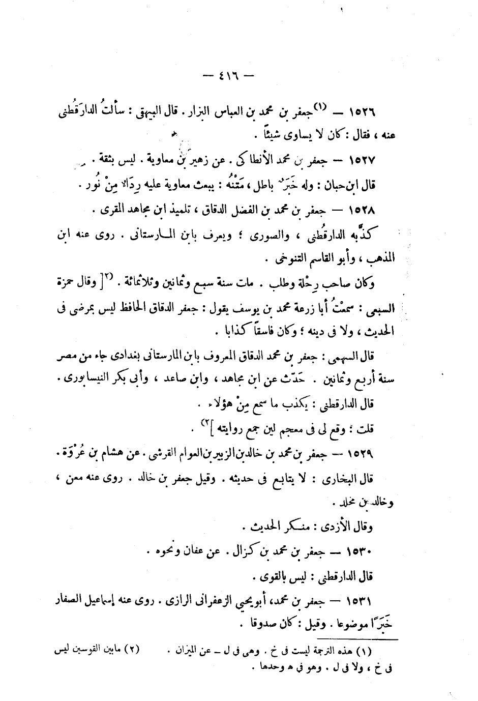 (2 [وقال حمزة السبعى: سمعت أبا زرعة محمد بن يوسف يقول: جعفر الدقاق الحافظ ليس بمرضى في الحديث، ولا في دينه، وكان فاسقا كذابا.