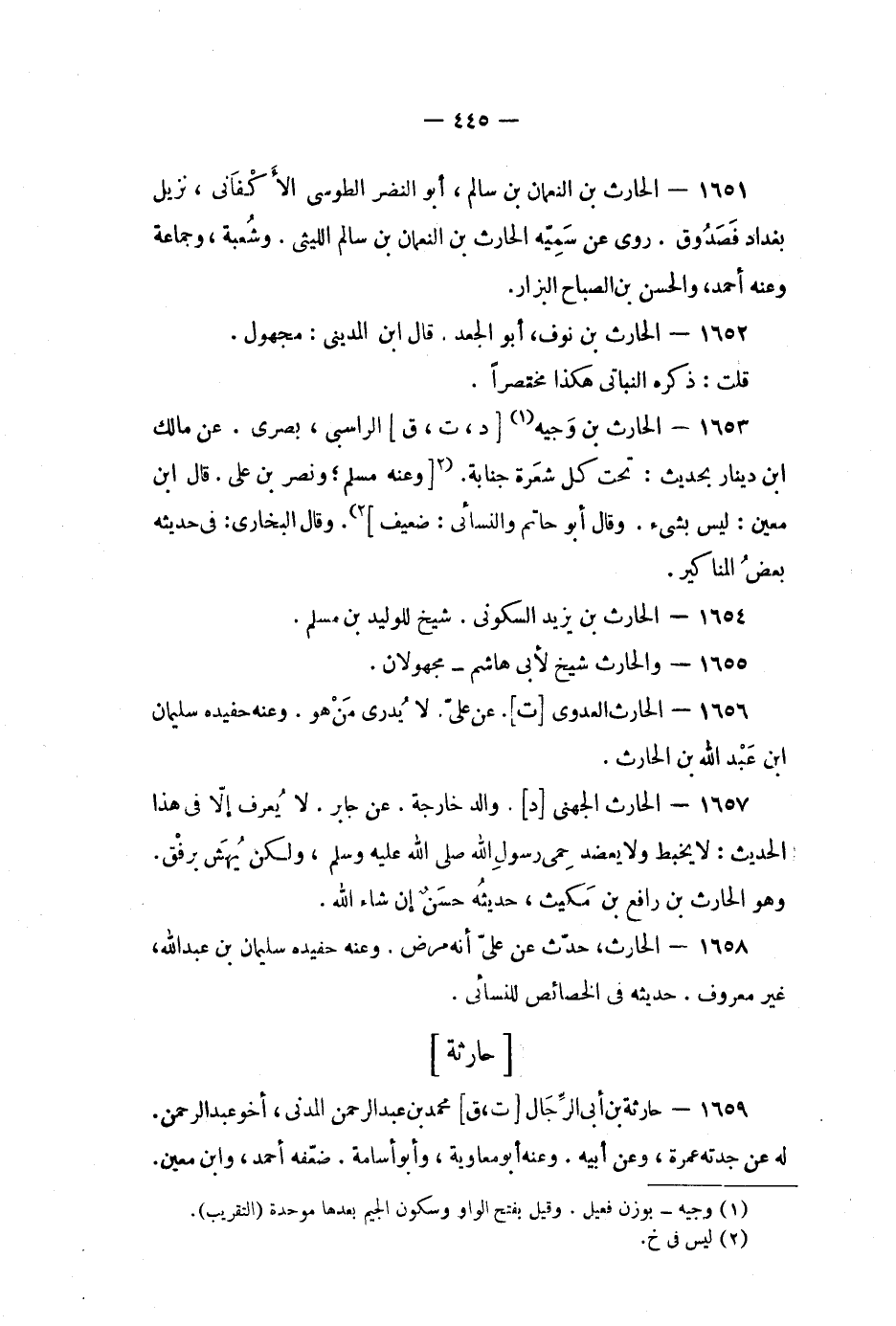1655 - والحارث شيخ لأبي هاشم - مجهولان.