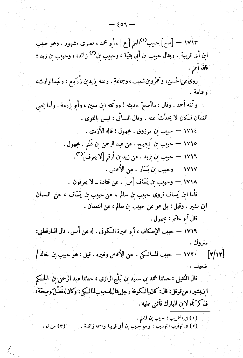 1713 -[صح] حبيب (1) المعلم [ع] ، أبو محمد، بصري مشهور.