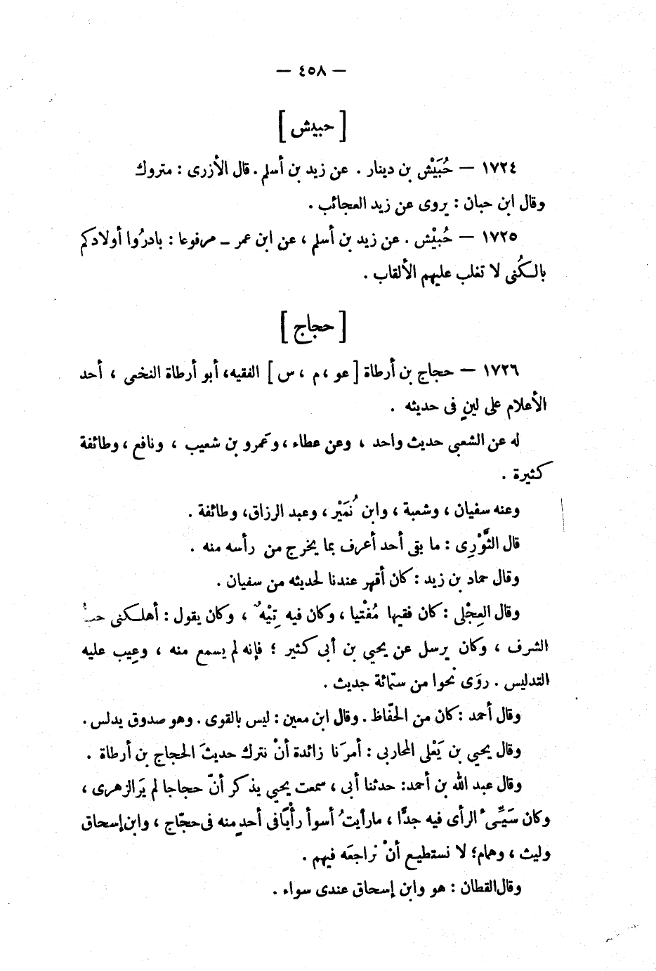 1726 - حجاج بن أرطاة [عو، م، س] الفقيه، أبو أرطاة النخعي، أحد الأعلام على لين في حديثه.
