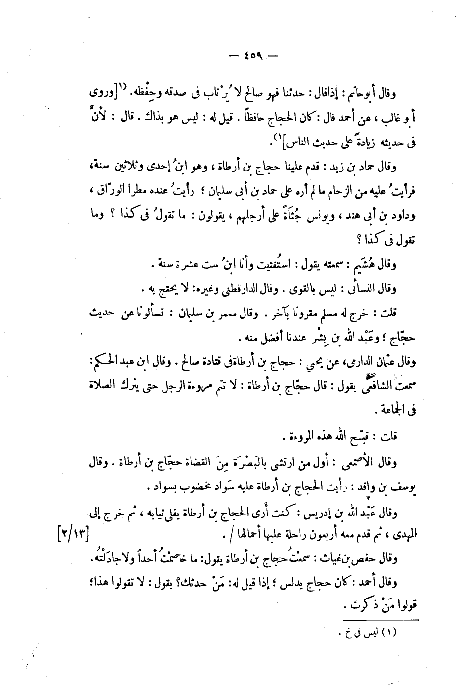 وقال عبد الله بن إدريس: كنت أرى الحجاج بن أرطاة يفلى ثيابه، ثم خرج إلى المهدي، ثم قدم معه أربعون راحلة عليها أحمالها /.