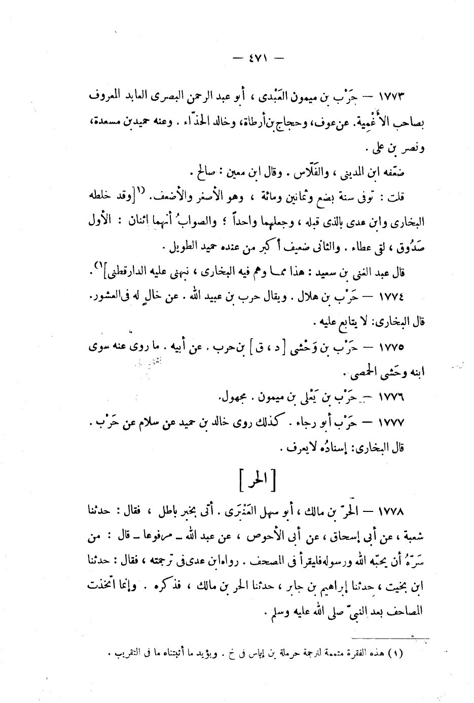 1773 - حرب بن ميمون العبدي، أبو عبد الرحمن البصري العابد المعروف بصاحب الاغمية.