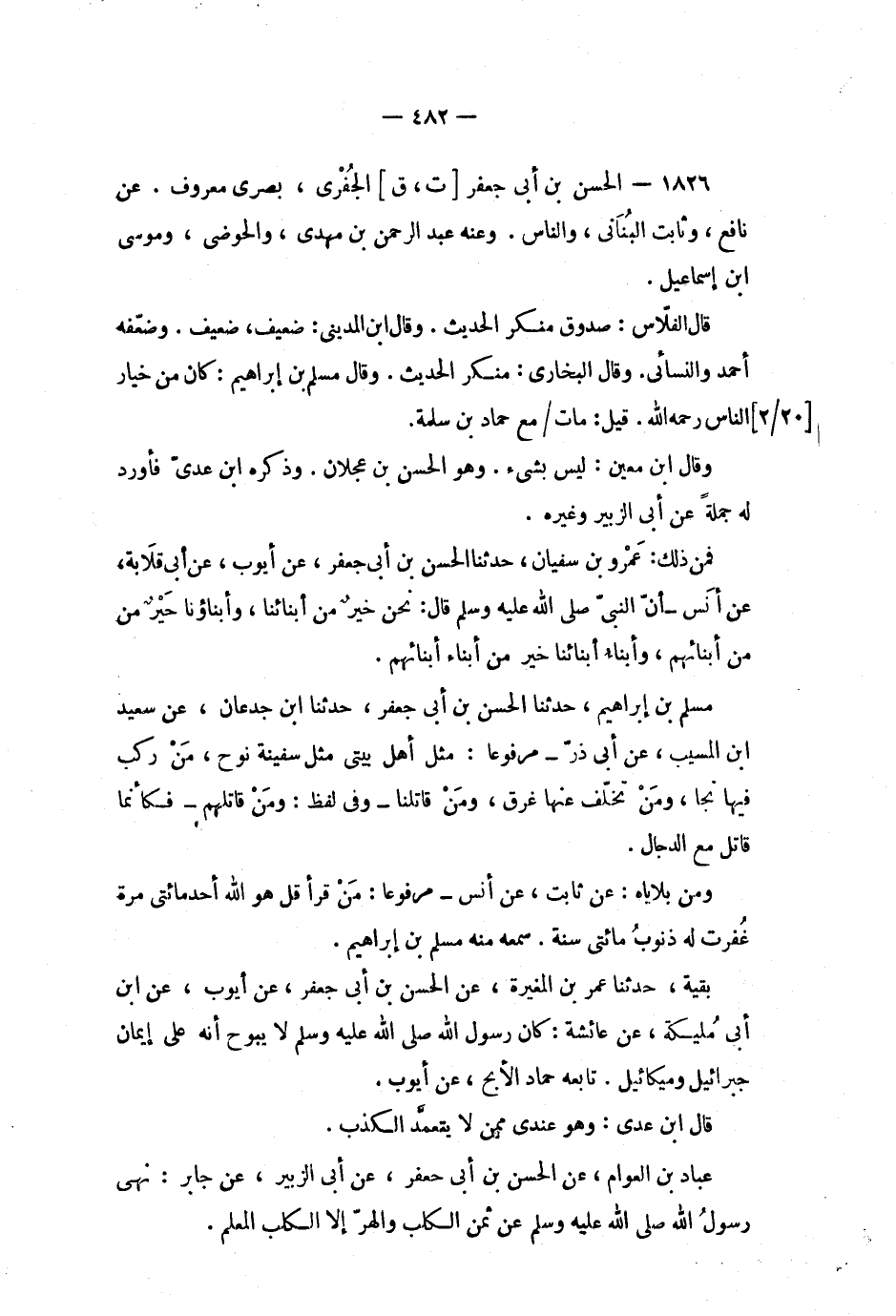1826 - الحسن بن أبي جعفر [ت، ق] الجفرى، بصري معروف.