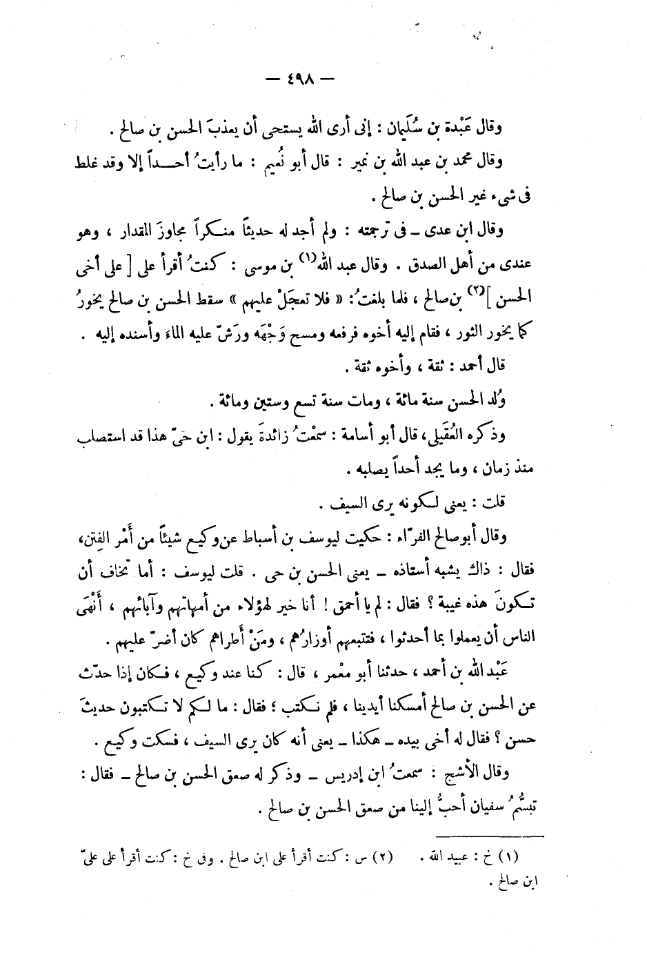 وقال محمد بن عبد الله بن نمير: قال أبو نعيم: ما رأيت أحدا إلا وقد غلط في شئ غير الحسن بن صالح.