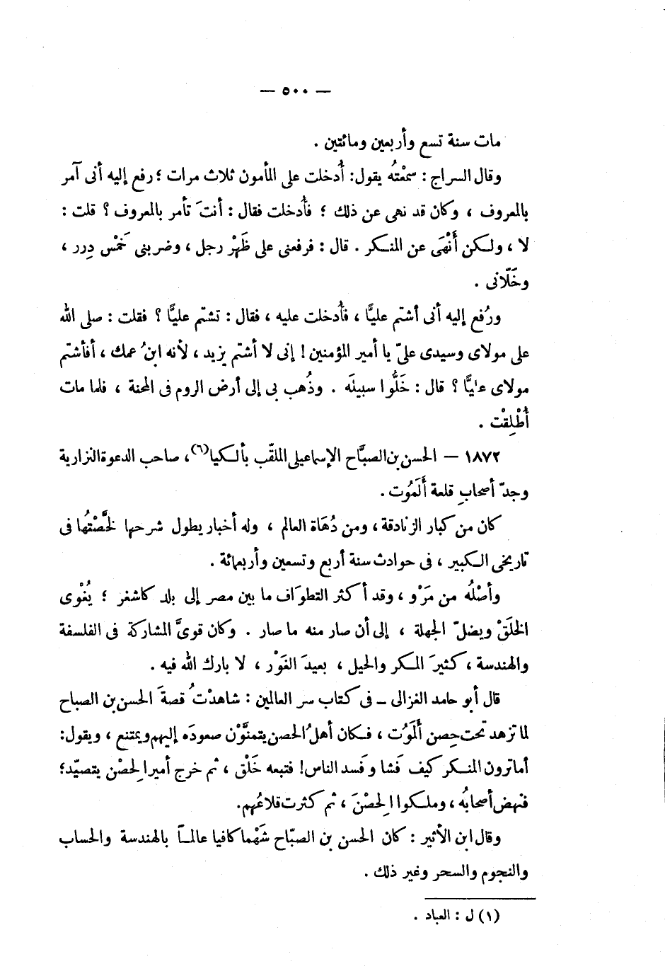 1872 - الحسن بن الصباح الإسماعيلي الملقب بألكيا (1) ، صاحب الدعوة النزارية وجد أصحاب قلعة الموت.