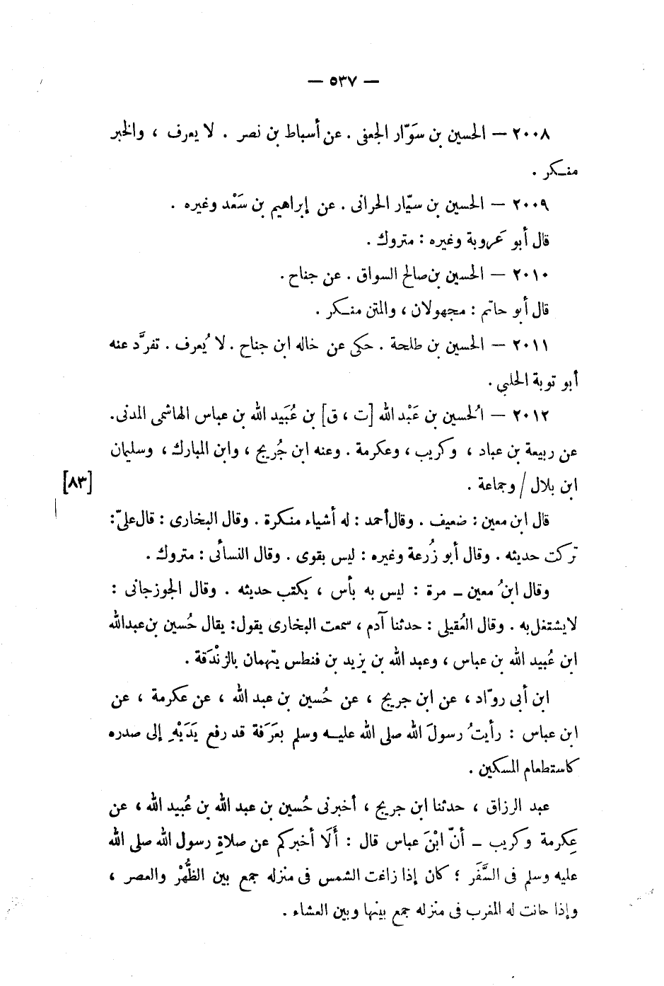 2012 - الحسين بن عبد الله [ت، ق] بن عبيد الله بن عباس الهاشمي المدني.