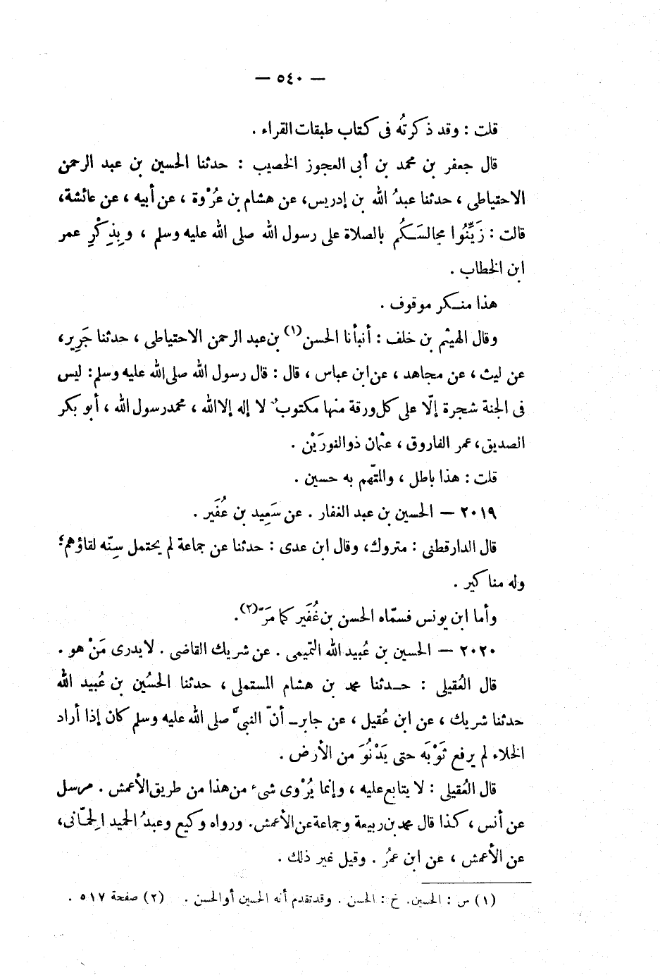 قال جعفر بن محمد بن أبي العجوز الخصيب: حدثنا الحسين بن عبد الرحمن