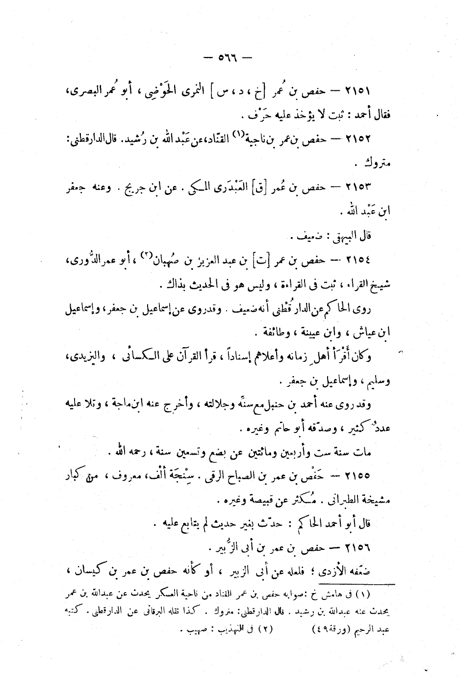 2154 - حفص بن عمر [ت] بن عبد العزيز بن صهبان (2) ، أبو عمر الدوري، شيخ القراء، ثبت في القراءة، وليس هو في الحديث بذاك.