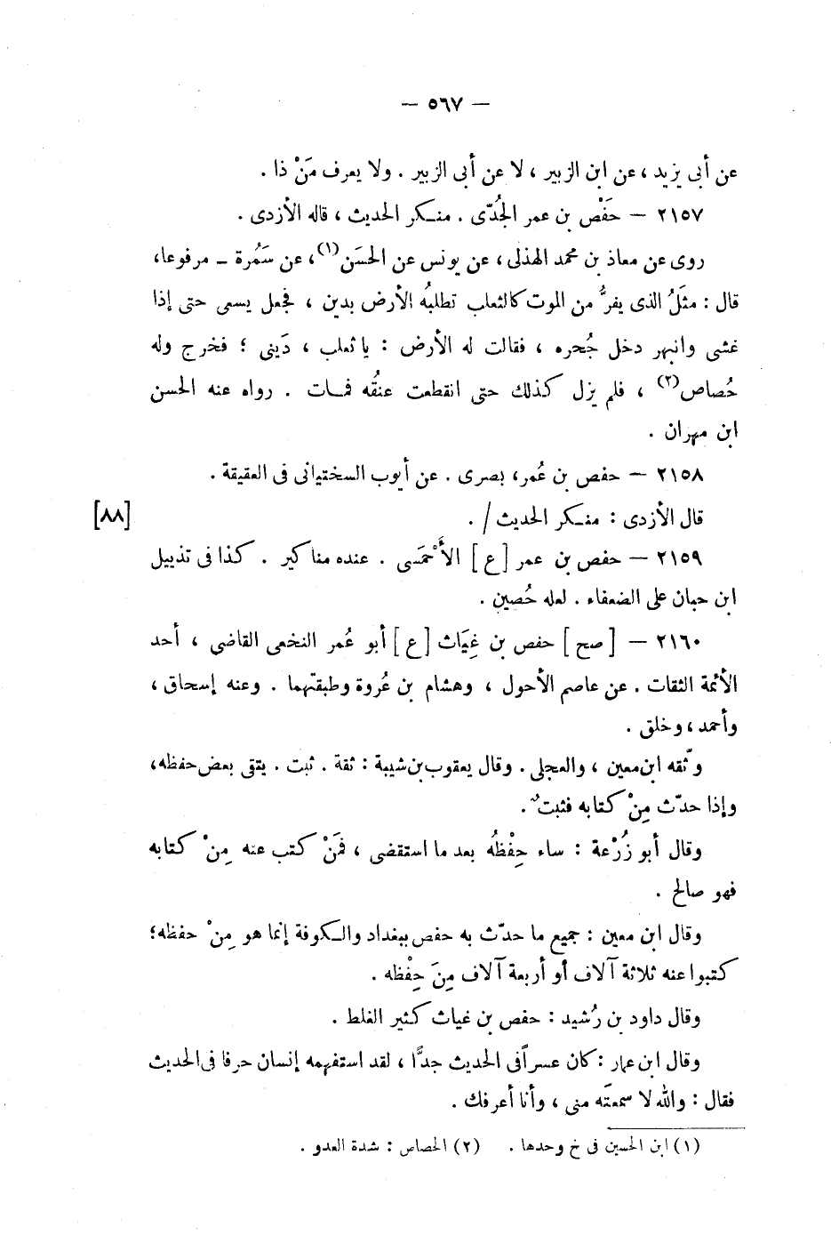 2160 -[صح] حفص بن غياث [ع] أبو عمر النخعي القاضي، أحد الائمة الثقات.
