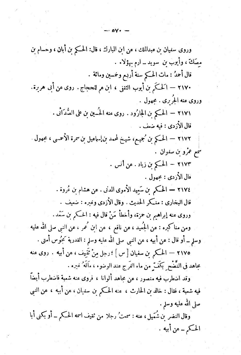 2172 - الحكم بن جميع، شيخ لمحمد بن إسماعيل بن سمرة الاحمسي، مجهول سمع عمرو بن صفوان.