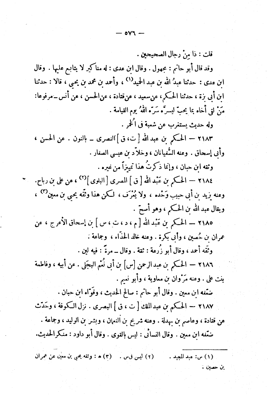 2185 - الحكم بن عبد الله [م، د، ت، س] بن إسحاق الأعرج، عن عمران بن حصين، وأبي بكرة.