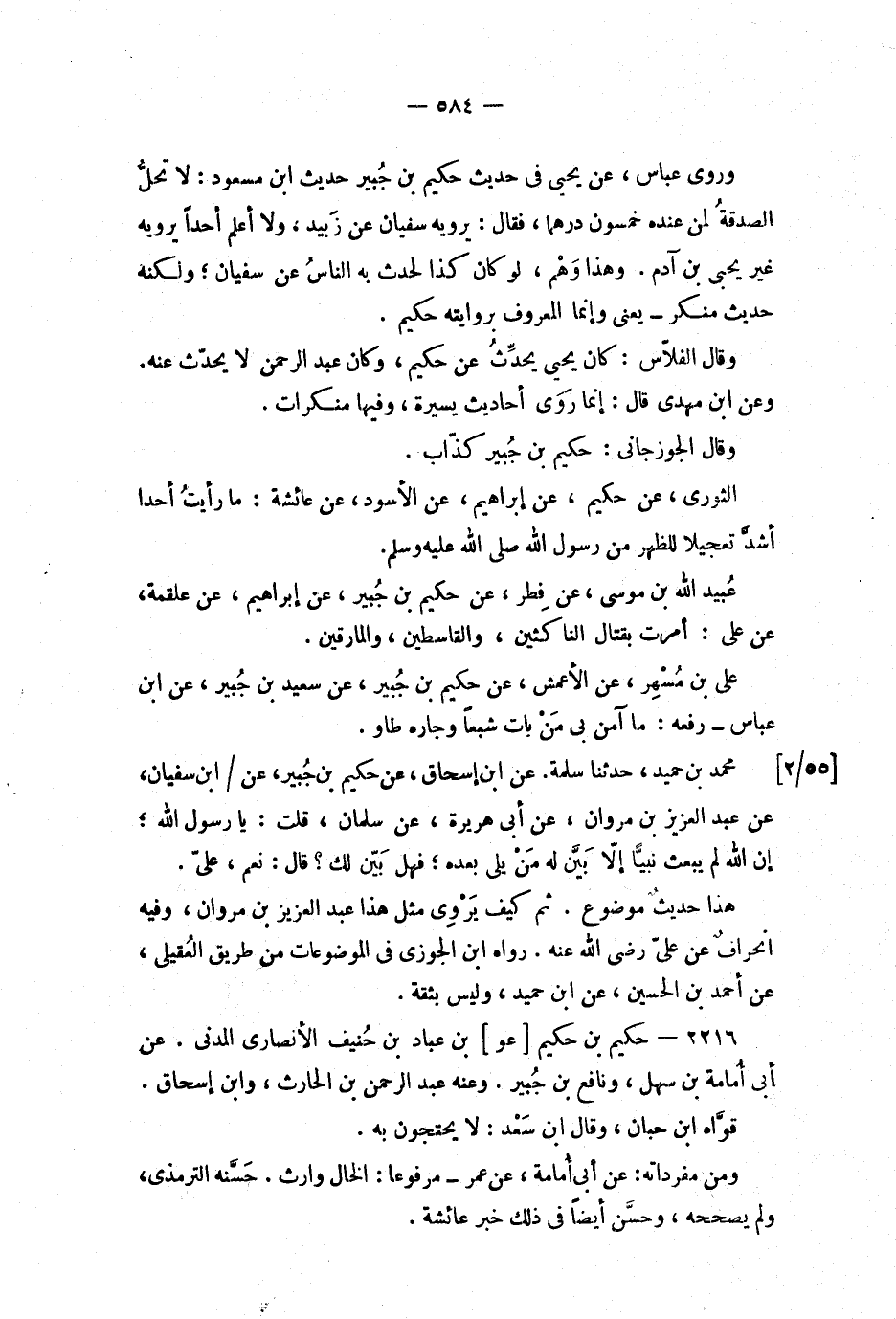 وقال الجوزجاني: حكيم بن جبير كذاب.