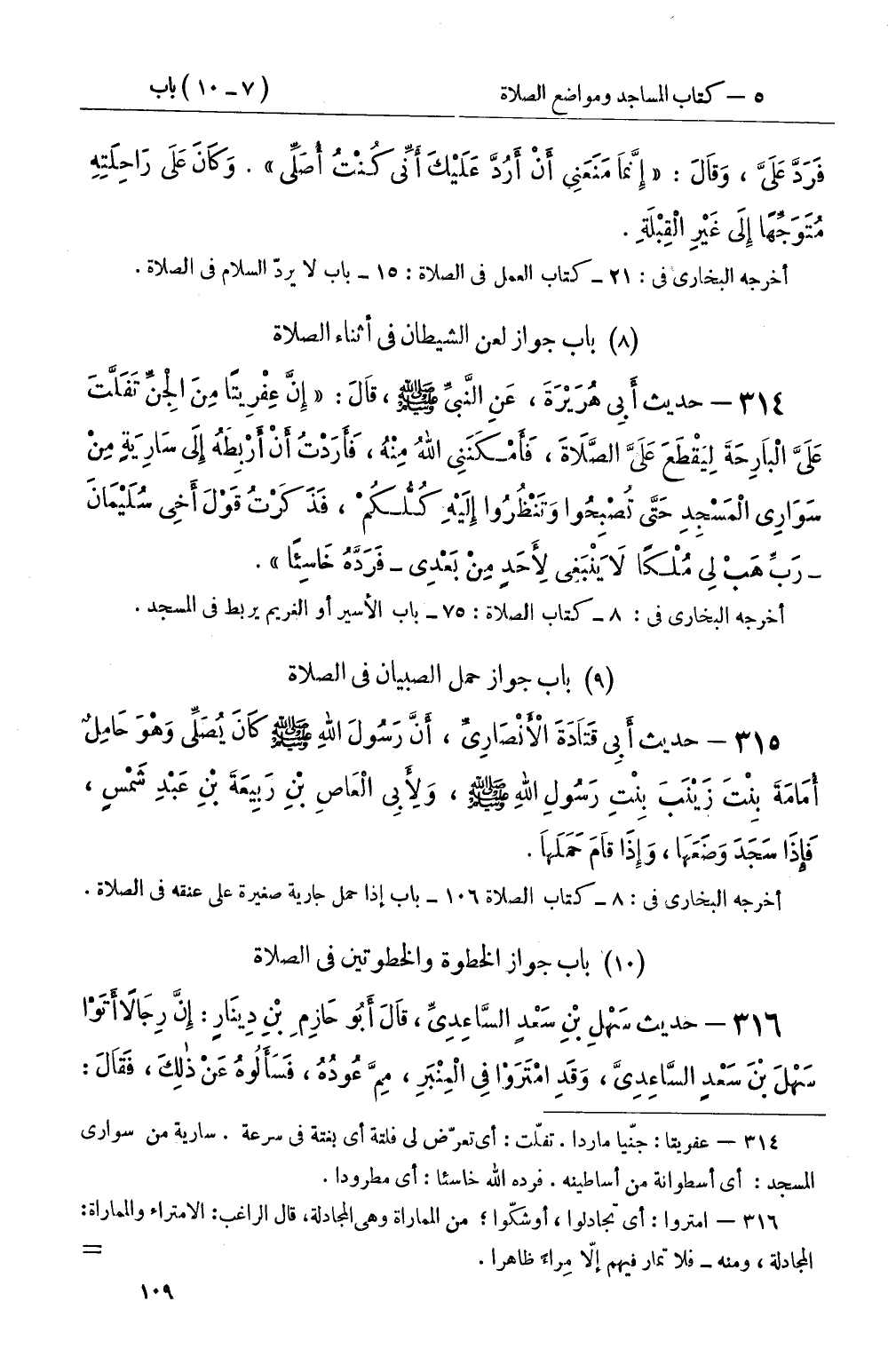314 - حديث أَبِي هُرَيْرَةَ، عَنِ النَّبِيِّ صَلَّى اللَّهُ عَلَيْهِ وَسَلَّمَ، قَالَ: إِنَّ عِفْرِيتًا مِنَ الْجِنِّ تَفَلَّتَ عَلَيَّ الْبَارِحَةَ لِيَقْطَعَ عَلَيَّ الصَّلاَةَ، فَأَمْكَنَنِي اللهُ مِنْهُ، فَأَرَدْتُ أَنْ أَرْبِطَهُ إِلَى سَارِيَةٍ مِنْ سَوَارِي الْمَسْجِدِ حَتَّى تُصْبِحُوا وَتَنْظُرُوا إِلَيْهِ كُلُّكُمْ، فَذَكَرْتُ قَوْلَ أَخِي سُلَيْمَانَ (رَبِّ هَبْ لِي مُلْكًا لاَ يَنْبَغِي لأَحدٍ مِنْ بَعْدِي) فَرَدَّهُ خَاسِئًا