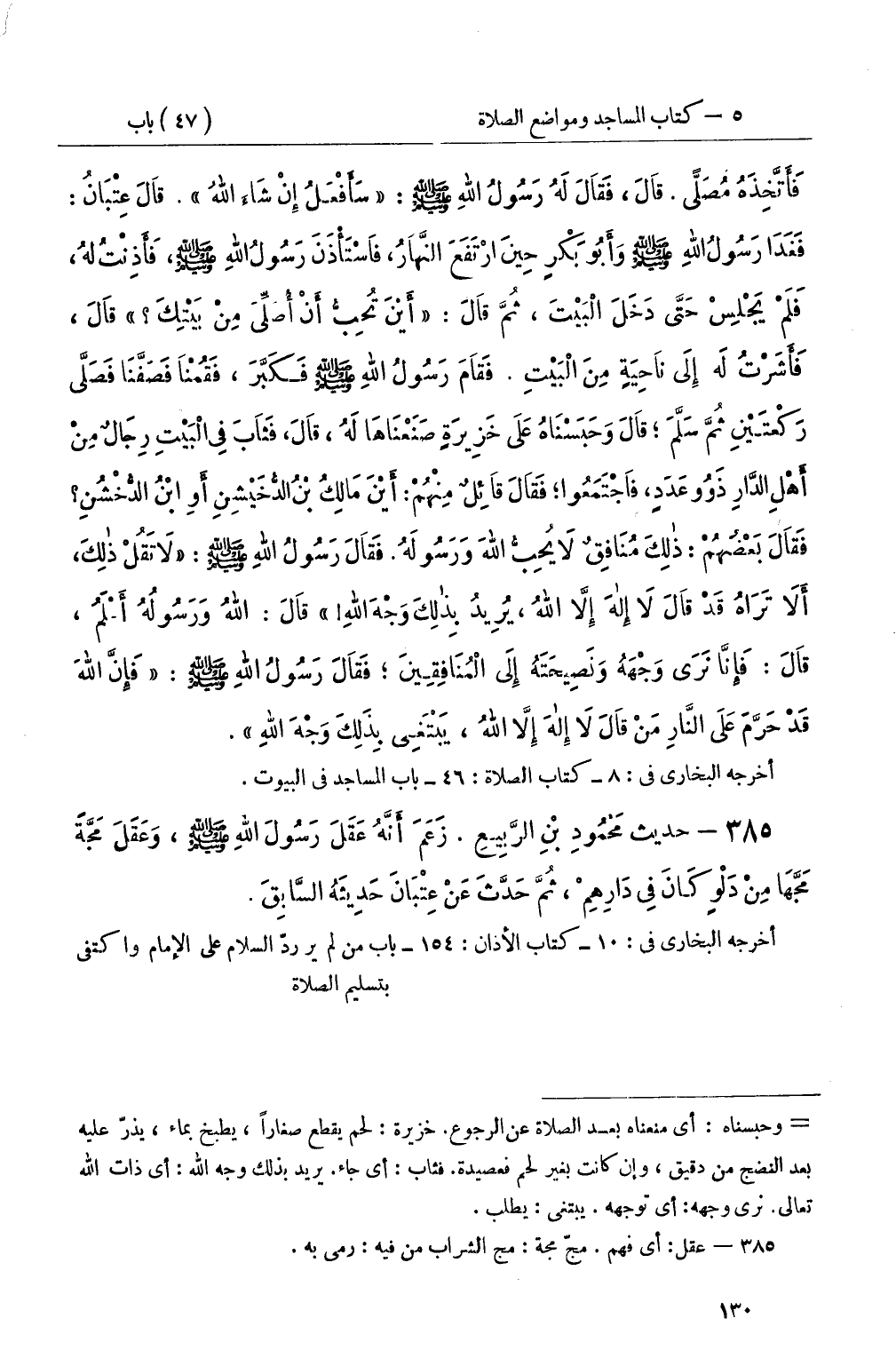 385 - حديث مَحْمُودِ بْنِ الرَّبِيعِ زَعَمَ أَنَّهُ عَقَلَ رَسُولَ اللهِ صَلَّى اللَّهُ عَلَيْهِ وَسَلَّمَ، وَعَقَلَ مَجَّةً مَجَّهَا مِنْ دَلْوٍ كَانَ فِي دَارِهِمْ، ثُمَّ حَدَّثَ عَنْ عِتْبَانَ حَدِيثَهُ السَّابِقَ