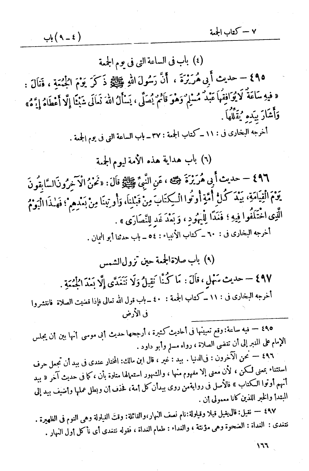 496 - حديث أَبِي هُرَيْرَةَ رضي الله عنه، عَنِ النَّبِيِّ صَلَّى اللَّهُ عَلَيْهِ وَسَلَّمَ قَالَ: نَحْنُ الآخِرُونَ السَّابِقُونَ يَوْمَ الْقِيَامَةِ، بَيْدَ كُلُّ أُمَّةٍ أُوتُوا الْكِتَابَ مِنْ قَبْلِنَا، وَأُوتينَا مِنْ بَعْدِهِمْ؛ فَهذَا الْيَوْمُ الَّذي اخْتَلَفُوا فِيهِ؛ فَغَدًا لِلْيَهُودِ، وَبَعْدَ غَدٍ لِلنَّصَارَى