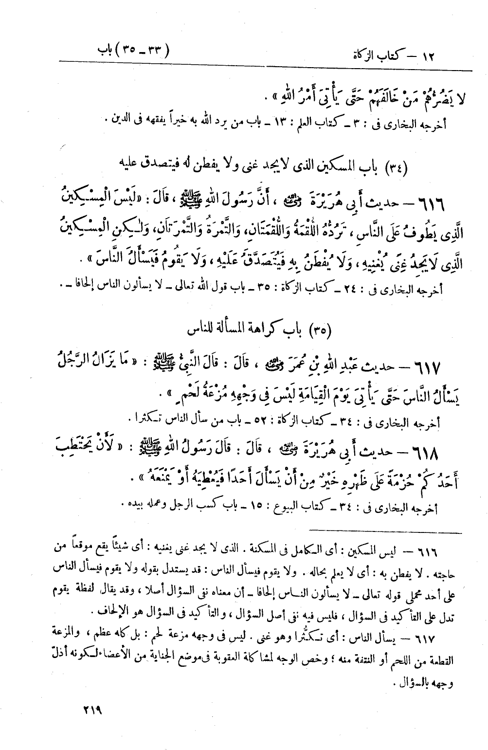 616 - حديث أَبِي هُرَيْرَةَ رضي الله عنه، أَنَّ رَسُولَ اللهِ صَلَّى اللَّهُ عَلَيْهِ وَسَلَّمَ، قَالَ: لَيْسَ الْمِسْكِينُ الَّذِي يَطُوفُ عَلَى النَّاسِ، تَرُدُّهُ اللقْمَةُ وَاللُّقْمَتَانِ، وَالتَّمْرَةُ وَالتَّمْرَتَانِ، وَلكِنِ الْمِسْكِينُ لاَ يَجِدُ غِنًى يُغْنِيهِ، وَلاَ يُفْطَنُ بِهِ فَيُتَصَدَّقُ عَلَيْهِ، وَلاَ يَقُومُ فَيَسْأَلُ النَّاسَ