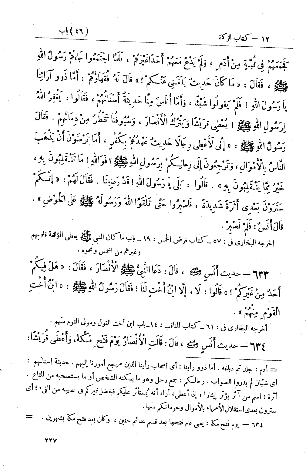 634 - حديث أَنَسٍ رضي الله عنه، قَالَ: قَالَتِ الأَنْصَارُ يَوْمَ فَتْحِ مَكَّةَ، وأَعْطَى قُرَيْشًا: -[228]- وَاللهِ إِنَّ هذَا لَهُوَ الْعَجَبُ، إِنَّ سُيُوفَنَا تَقْطُرُ مِنْ دِمَاءِ قُرَيْشٍ، وَغَنَائِمُنَا تَرَدُّ عَلَيْهِمْ فَبَلَغَ ذلِكَ النَّبِيَّ صَلَّى اللَّهُ عَلَيْهِ وَسَلَّمَ، فَدَعَا الأَنْصَارَ قَالَ، فَقَالَ: مَا الَّذِي بَلَغَنِي عَنْكُمْ وَكَانُوا لاَ يَكْذِبُونَ فَقَالُوا: هُوَ الَّذِي بَلَغَكَ قَالَ: أَوَ لاَ تَرْضَوْنَ أَنْ يَرْجِعَ النَّاسُ بِالْغَنَائِمِ إِلَى بيُوتِهِمْ، وَتَرْجِعُونَ بِرَسُولِ اللهِ صَلَّى اللَّهُ عَلَيْهِ وَسَلَّمَ إِلَى بُيُوتِكُمْ لَوْ سَلَكَتِ الأَنْصَارُ وَادِيًا أَوْ شِعْبًا لَسَلَكْتُ وَادِيَ الأَنْصَارِ أَوْ شِعْبَهمْ
