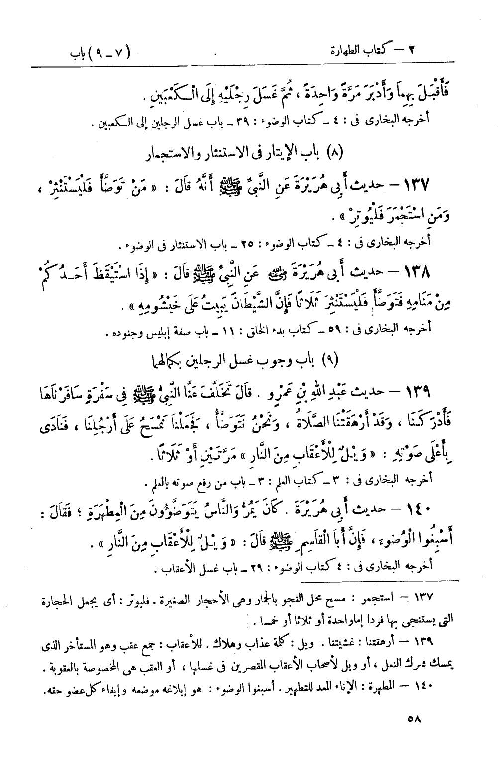 139 - حديث عَبْدِ اللهِ بْنِ عَمْرٍو قَالَ تَخَلَّفَ عَنَّا النَّبِيُّ صَلَّى اللَّهُ عَلَيْهِ وَسَلَّمَ فِي سَفْرَةٍ سَافَرْنَاهَا فَأَدْرَكَنَا، وَقَدْ أَرْهَقَتْنَا الصَّلاَةُ، وَنَحْنُ نَتَوَضًّأُ، فَجَعَلْنَا نَمْسَحُ عَلَى أَرْجُلِنَا، فَنَادَى بِأَعْلَى صَوْتِهِ: وَيْلٌ لِلأَعْقَابِ مِنَ النَّارِ مَرَّتَيْنِ أَوْ ثَلاَثًا