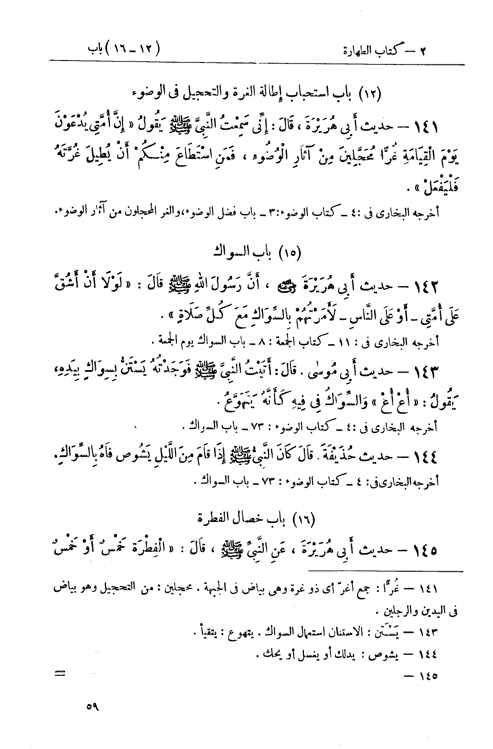 142 - حديث أَبِي هُرَيْرَةَ رضي الله عنه، أَنَّ رَسُولَ اللهِ صَلَّى اللَّهُ عَلَيْهِ وَسَلَّمَ قَالَ: لَوْلاَ أَنْ أَشُقَّ عَلَى أُمَّتِي أَوْ عَلَى النَّاسِ لأَمَرْتُهُمْ بِالسِّوَاكِ مَعَ كُلِّ صَلاَةٍ