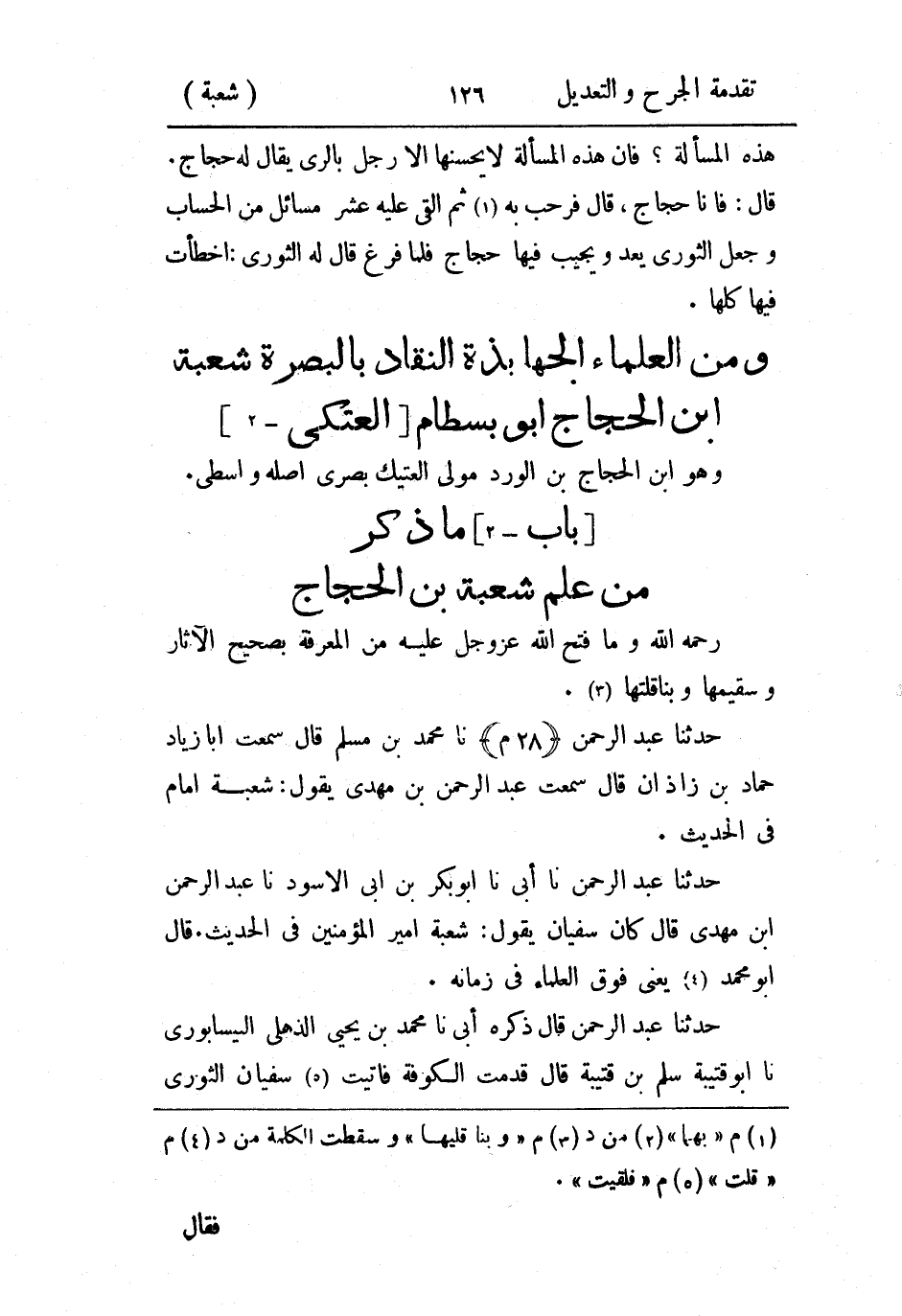 - ومن العلماء الجهابذة النقاد بالبصرة: شُعبة بن الحجاج أَبو بسطام العتكي.