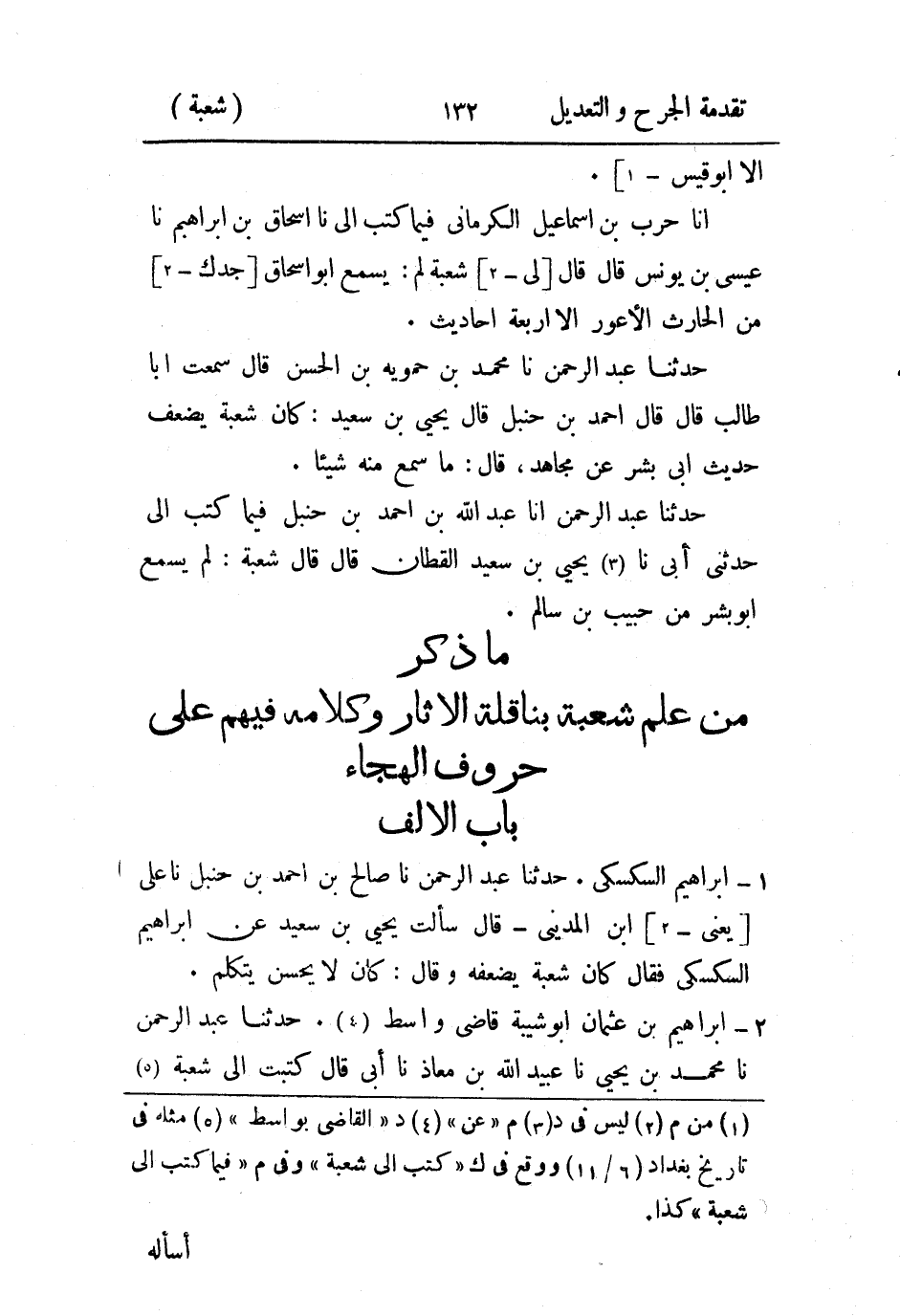- ما ذكر من علم شُعبة بناقلة الآثار وكلامه فيهم، على حروف الهجاء.