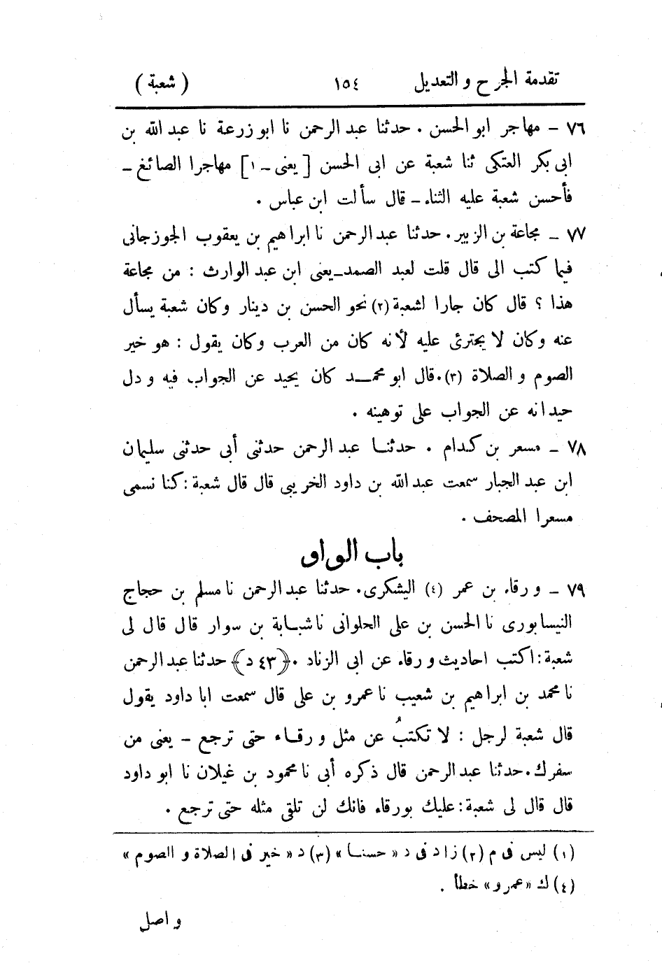 حَدثنا عَبد الرَّحمن، حَدثنا مسلم بن حجاج النيسابوري، حَدثنا الحسن بن علي الحلواني، حَدثنا شبابة بن سوار قال: قال لي شُعبة: أكتب أحاديث ورقاء، عَن أَبي الزناد.