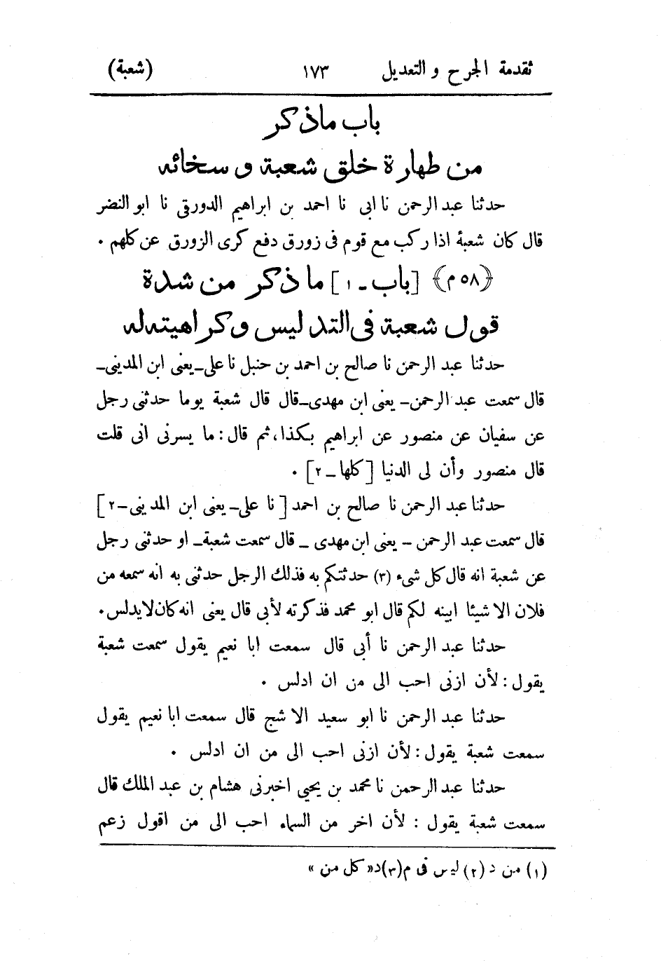 - باب ما ذكر من شدة قول شُعبة في التدليس وكراهيته له.