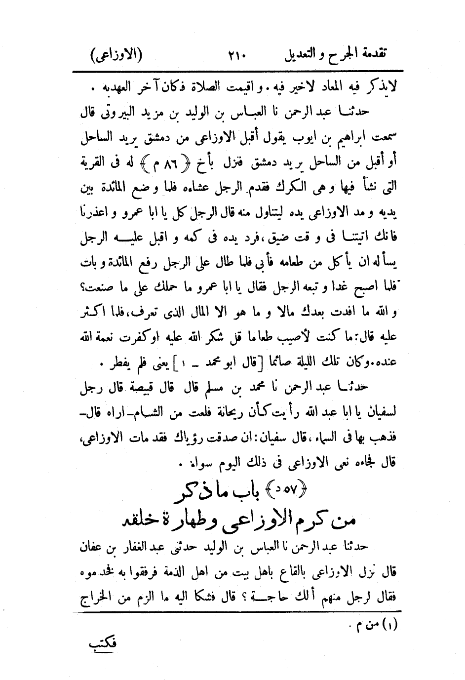 - باب ما ذكر من كرم الأَوزاعي وطهارة خلقه: