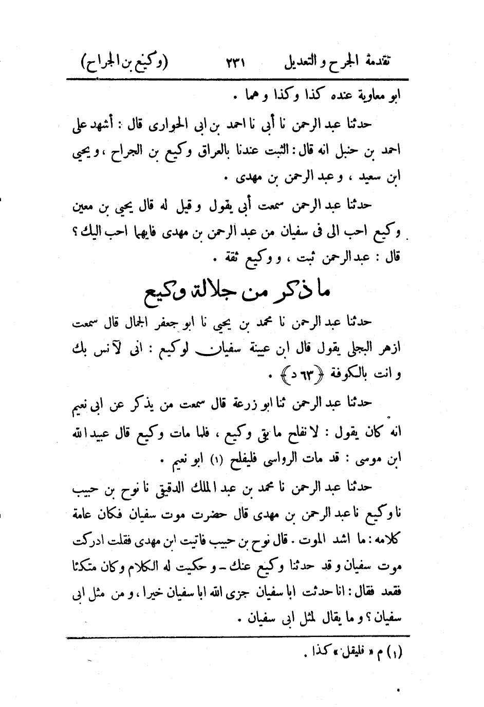 حَدثنا عَبد الرَّحمن، حَدثنا محمد بن عَبد الملك الدقيقي، حَدثنا نوح بن حبيب، حَدثنا وكيع.