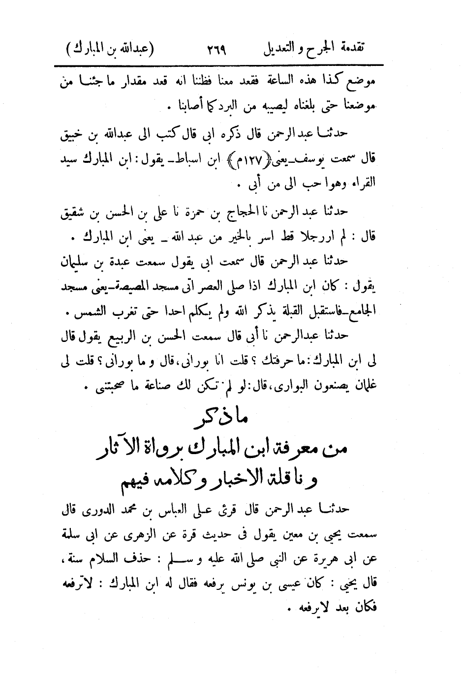 - ما ذكر من معرفة ابن المبارك برواة الآثار وناقله الأخبار وكلامه فيهم.