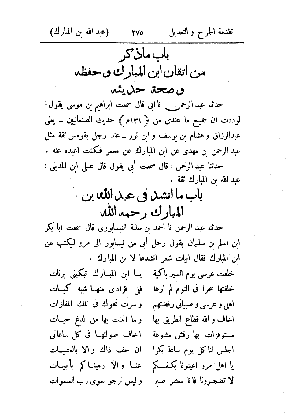 - باب ما أنشد في عَبد الله بن المبارك رحمه الله.