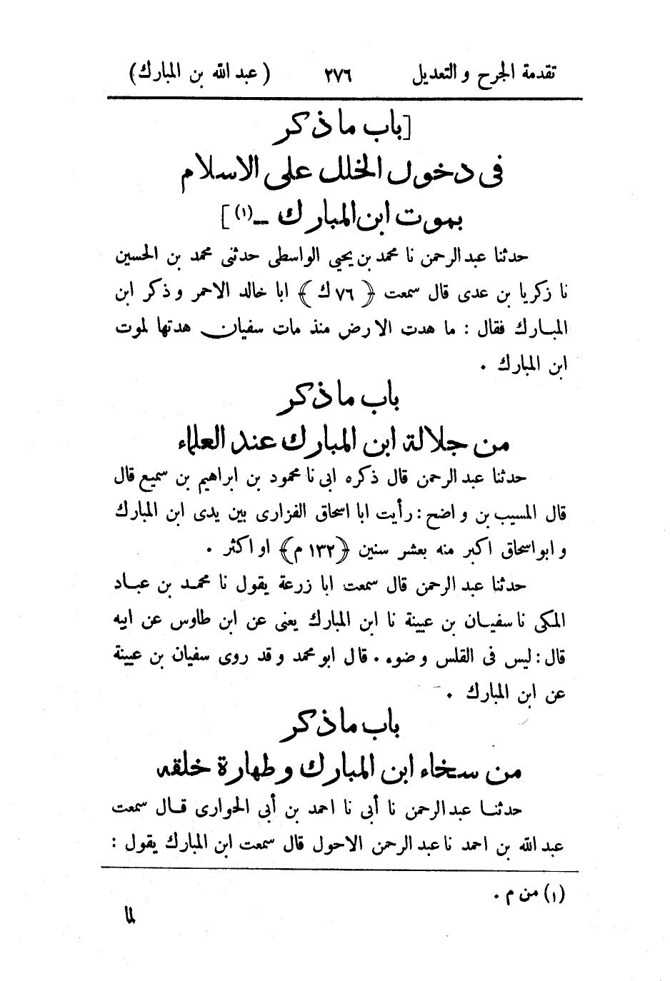 - باب ما ذكر من جلالة ابن المبارك عند العلماء.