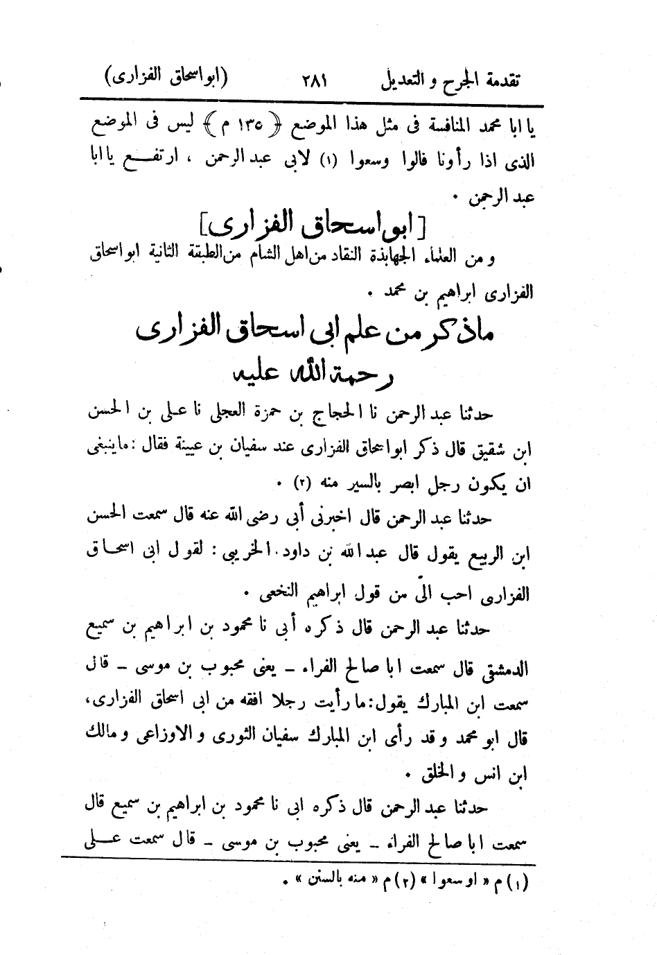 - ومن العلماء الجهابذة النقاد من أهل الشام، من الطبقة الثانية أَبو إِسحاق الفزاري إِبراهيم بن محمد.