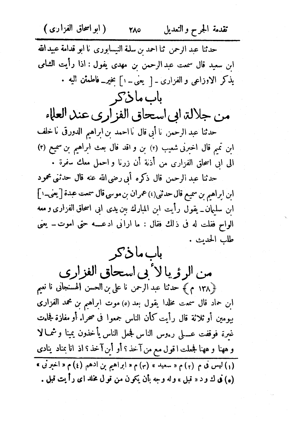 - باب ما ذكر من جلالة أبي إِسحاق الفزاري عند العلماء.
