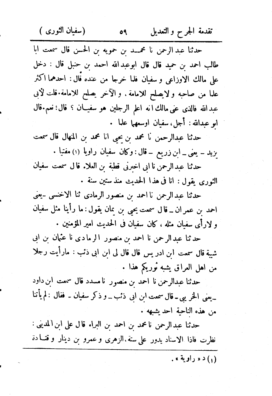 حَدثنا عَبد الرَّحمن، حَدثنا محمد بن يحيى، أَخْبَرنا محمد بن المنهال، قال: سَمِعتُ يزيد، يَعني ابن زريع، قَال: وكان سُفيان راويا مفتيا.