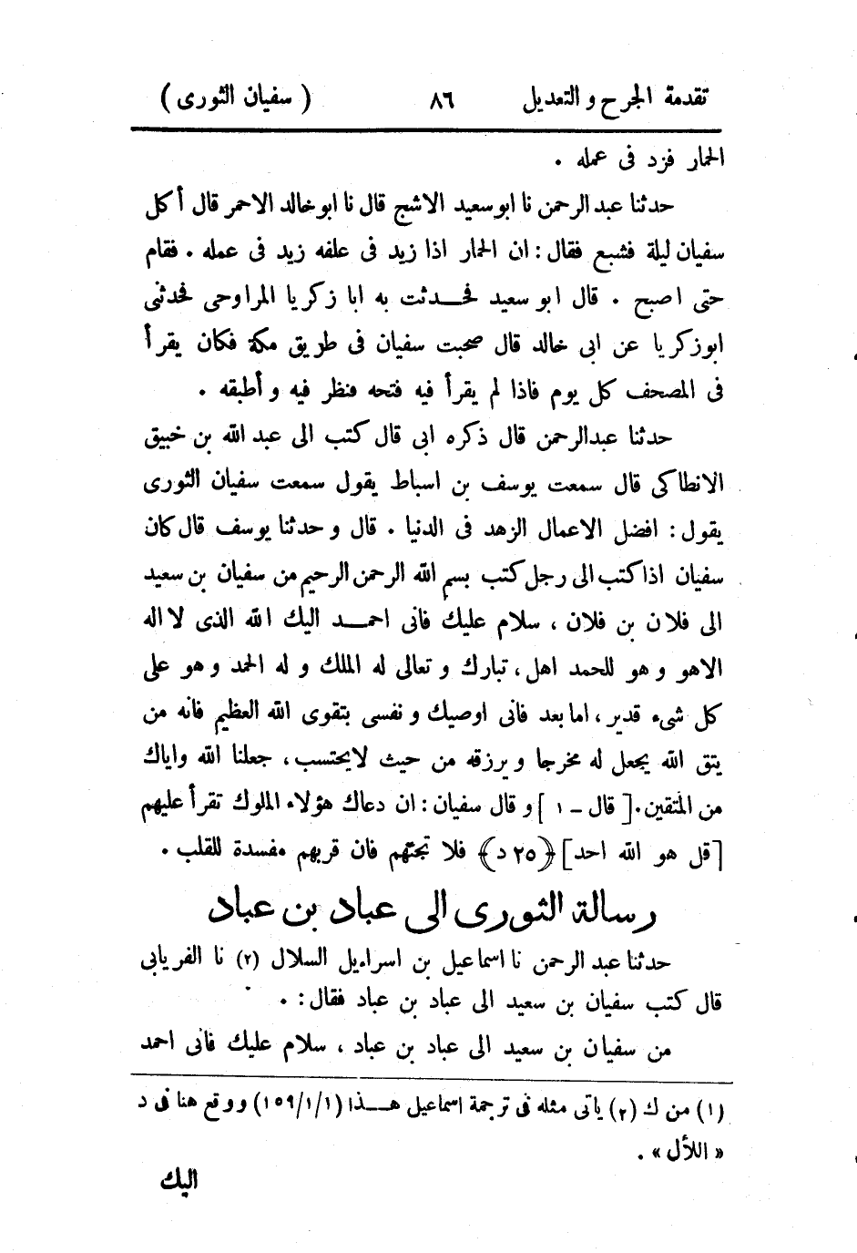 رسالة الثَّوريّ إلى عباد بن عباد.