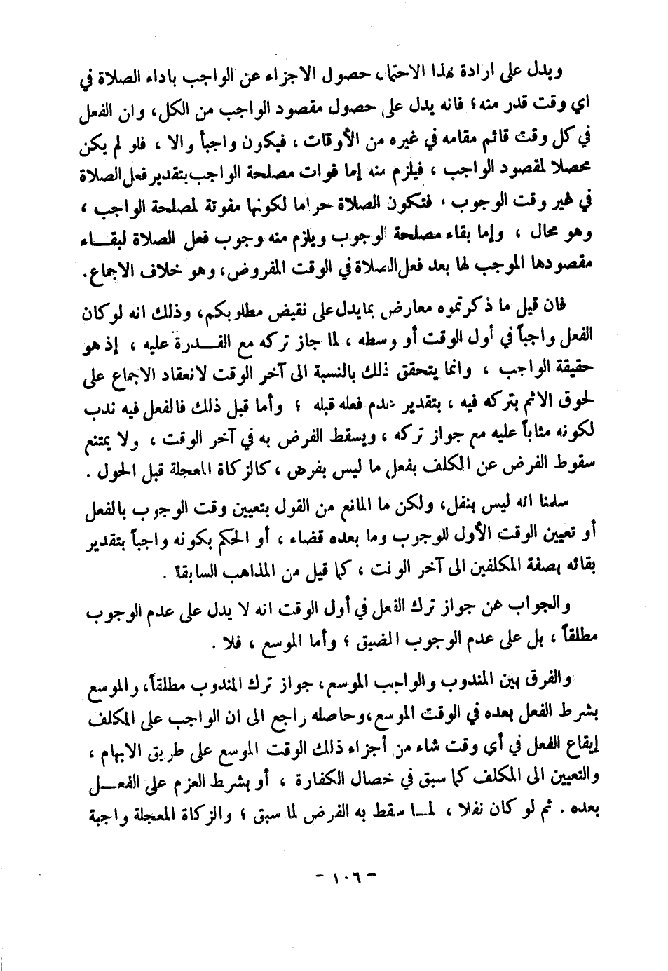 فَإِنْ قِيلَ: مَا ذَكَرْتُمُوهُ مُعَارَضٌ بِمَا يَدُلُّ عَلَى نَقِيضِ مَطْلُوبِكُمْ، وَذَلِكَ أَنَّهُ لَوْ كَانَ الْفِعْلُ وَاجِبًا فِي أَوَّلِ الْوَقْتِ أَوْ وَسَطِهِ لَمَا جَازَ تَرْكُهُ مَعَ الْقُدْرَةِ عَلَيْهِ ; إِذْ هُوَ حَقِيقَةُ الْوَاجِبِ، وَإِنَّمَا يَتَحَقَّقُ ذَلِكَ بِالنِّسْبَةِ إِلَى آخِرِ الْوَقْتِ لِانْعِقَادِ الْإِجْمَاعِ عَلَى لُحُوقِ الْإِثْمِ بِتَرْكِهِ فِيهِ بِتَقْدِيرِ عَدَمِ فِعْلِهِ قَبْلَهُ، وَأَمَّا قَبْلَ ذَلِكَ فَالْفِعْلُ فِيهِ نَدْبٌ لِكَوْنِهِ مُثَابًا مَعَ جَوَازِ تَرْكِهِ، وَيَسْقُطُ الْفَرْضُ بِهِ فِي آخِرِ الْوَقْتِ وَلَا يَمْتَنِعُ سُقُوطُ الْفَرْضِ عَنِ الْمُكَلَّفِ بِفِعْلِ مَا لَيْسَ بِفَرْضٍ كَالزَّكَاةِ الْمُعَجَّلَةِ قَبْلَ الْحَوْلِ.