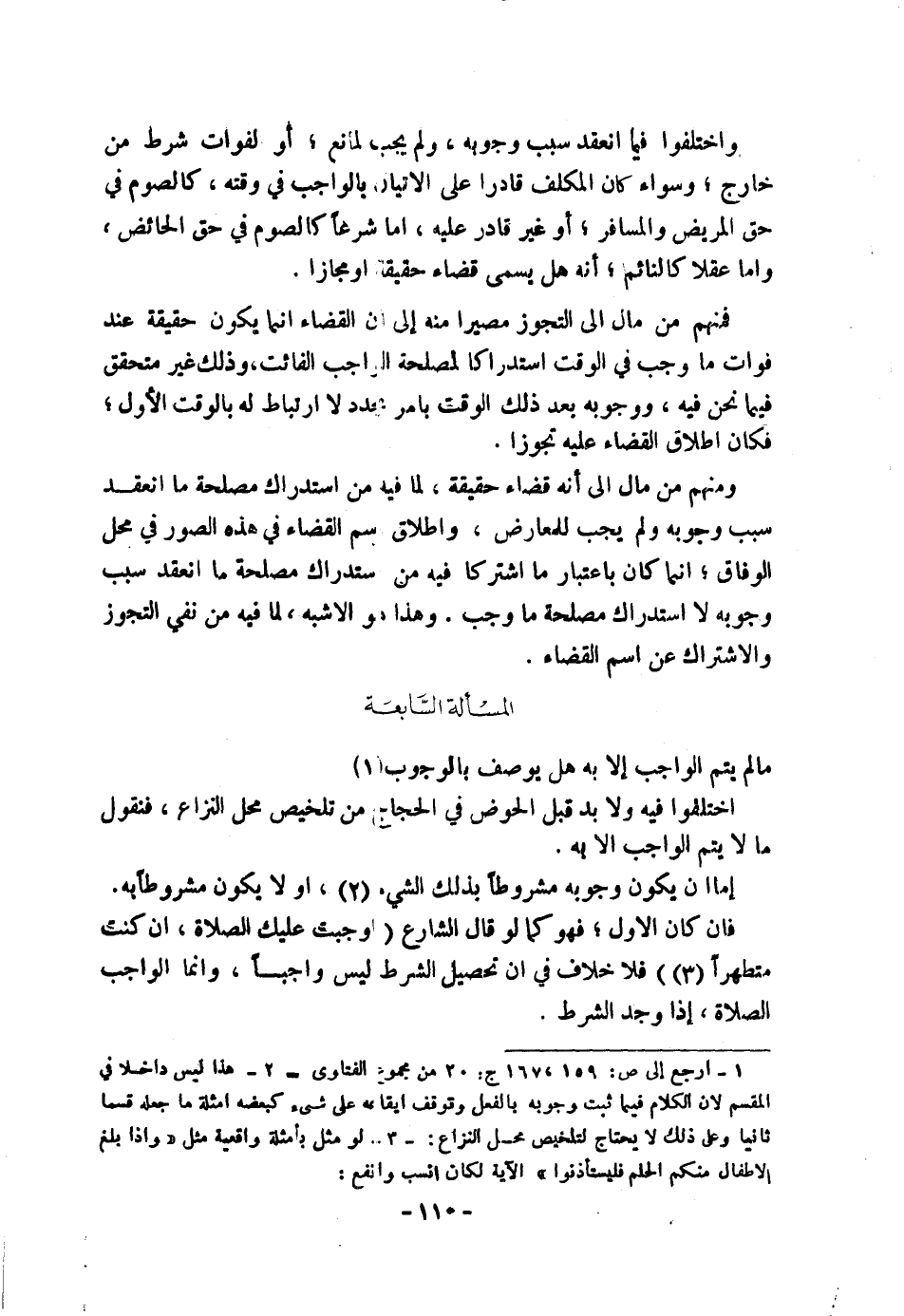 مَا لَا يَتِمُّ الْوَاجِبُ إِلَّا بِهِ هَلْ يُوصَفُ بِالْوُجُوبِ؟ (١) اخْتَلَفُوا فِيهِ، وَلَا بُدَّ قَبْلَ الْخَوْضِ فِي الْحِجَاجِ مِنْ تَلْخِيصِ مَحَلِّ النِّزَاعِ فَنَقُولُ: مَا لَا يَتِمُّ الْوَاجِبُ إِلَّا بِهِ.