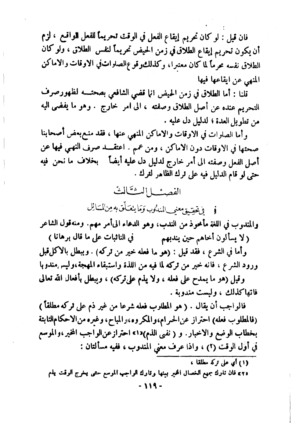 [الْفَصْلُ الثَّالِثُ فِي تَحْقِيقِ مَعْنَى الْمَنْدُوبِ وَمَا يَتَعَلَّقُ بِهِ مِنَ الْمَسَائِلِ]
