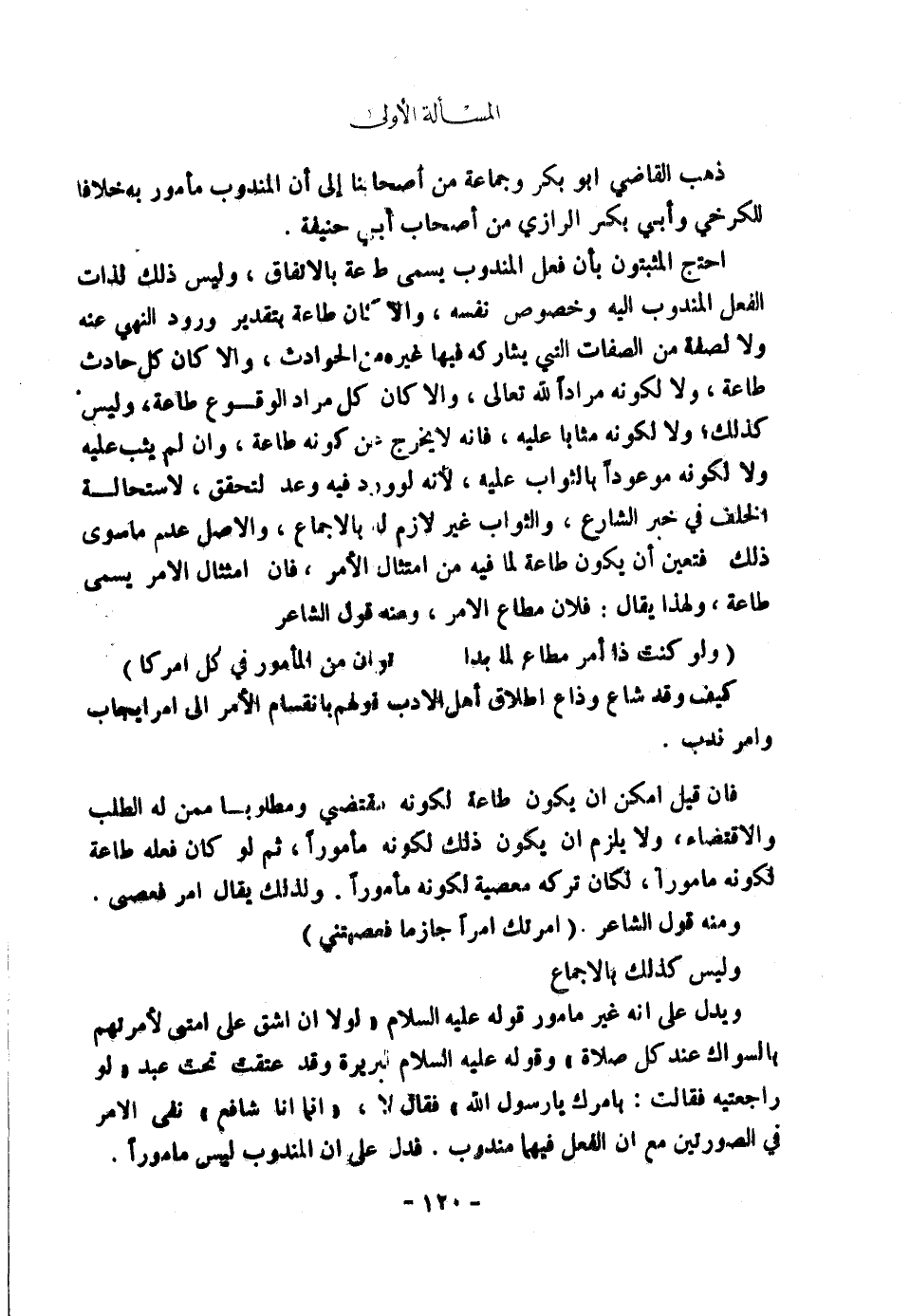 فَإِنْ قِيلَ: أَمْكَنَ أَنْ يَكُونَ طَاعَةً لِكَوْنِهِ مُقْتَضٍ وَمَطْلُوبًا مِمَّنْ لَهُ الطَّلَبُ وَالِاقْتِضَاءُ، وَلَا يَلْزَمُ أَنْ يَكُونَ ذَلِكَ لِكَوْنِهِ مَأْمُورًا، ثُمَّ لَوْ كَانَ فِعْلُهُ طَاعَةً لِكَوْنِهِ مَأْمُورًا لَكَانَ تَرْكُهُ مَعْصِيَةً لِكَوْنِهِ مَأْمُورًا، وَلِذَلِكَ يُقَالُ: أُمِرَ فَعَصَى، وَمِنْهُ قَوْلُ الشَّاعِرِ: